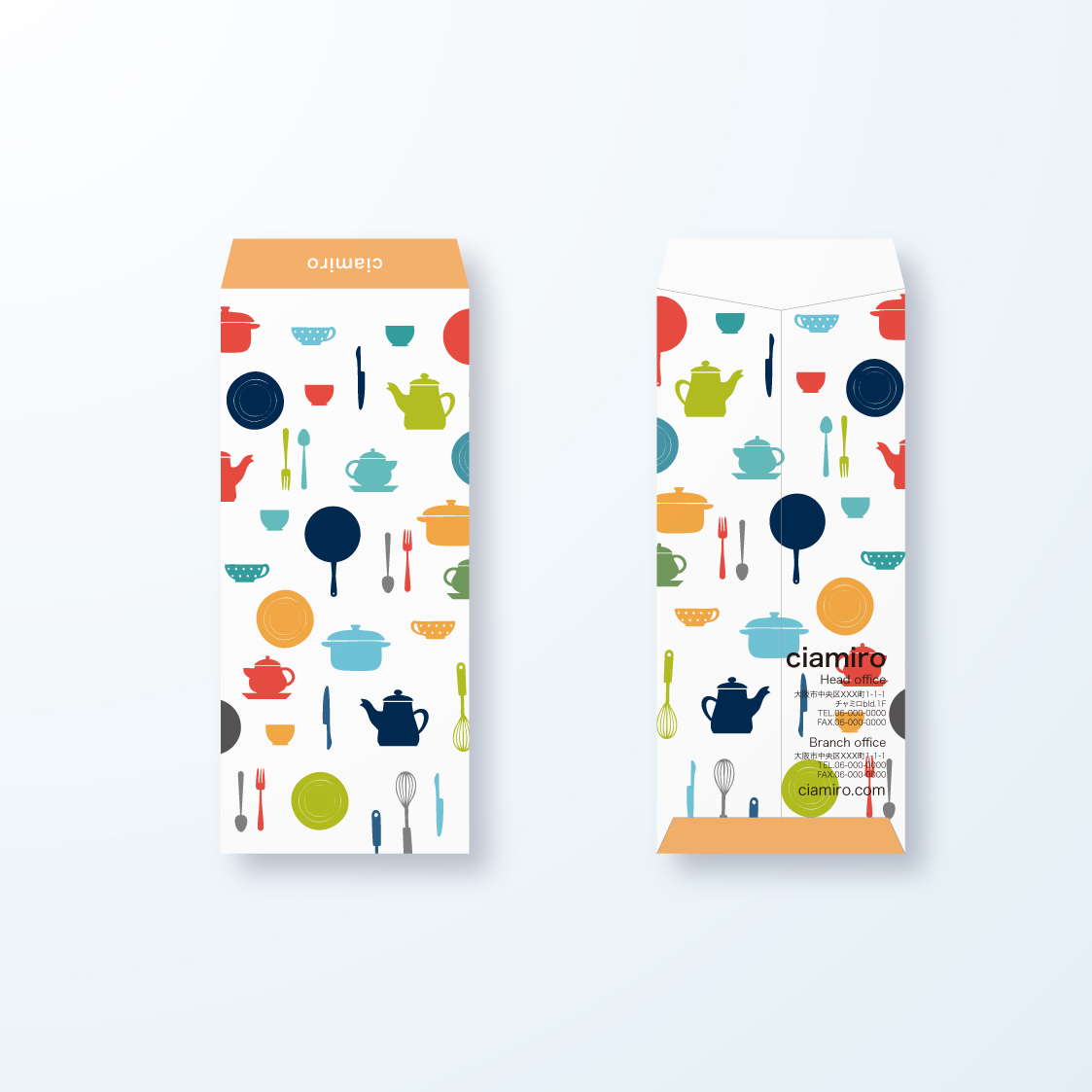 【長4封筒】カラフルなキッチンツールのポップロゴ