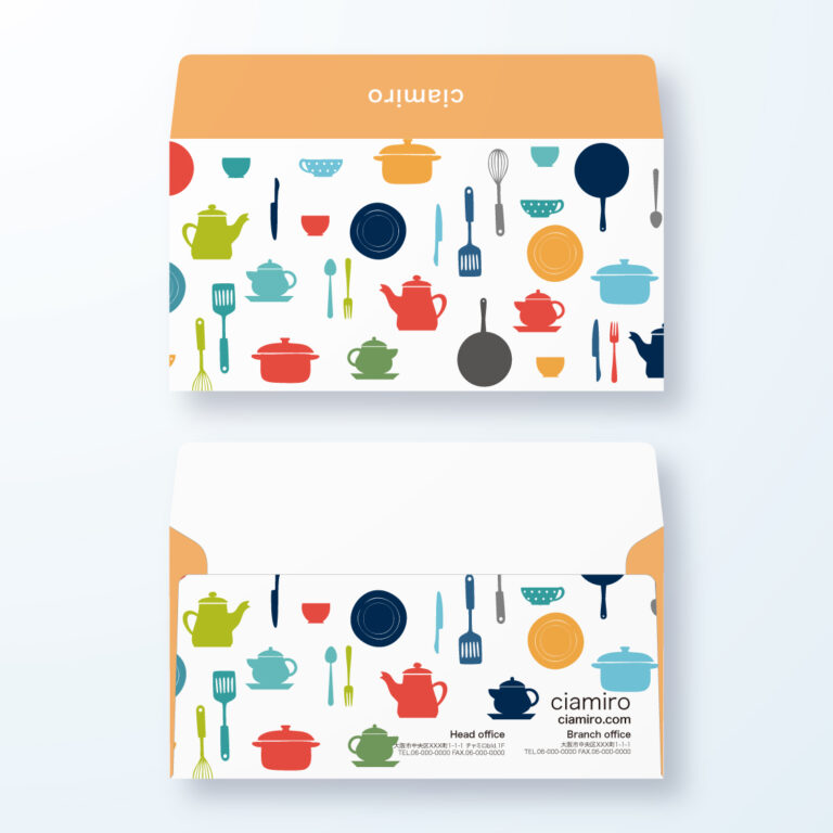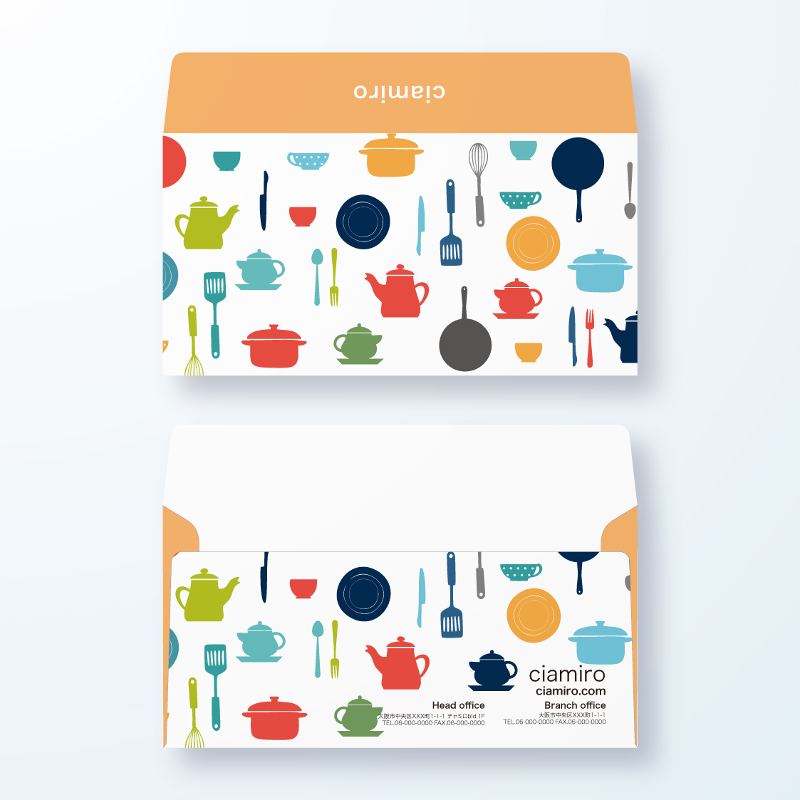 【長4封筒】カラフルなキッチンツールのポップロゴ