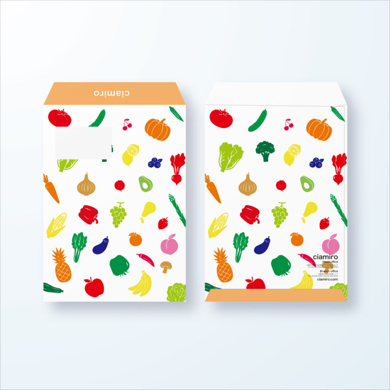 【洋長3封筒】カラフルなフルーツ&ベジタブルのポップロゴ
