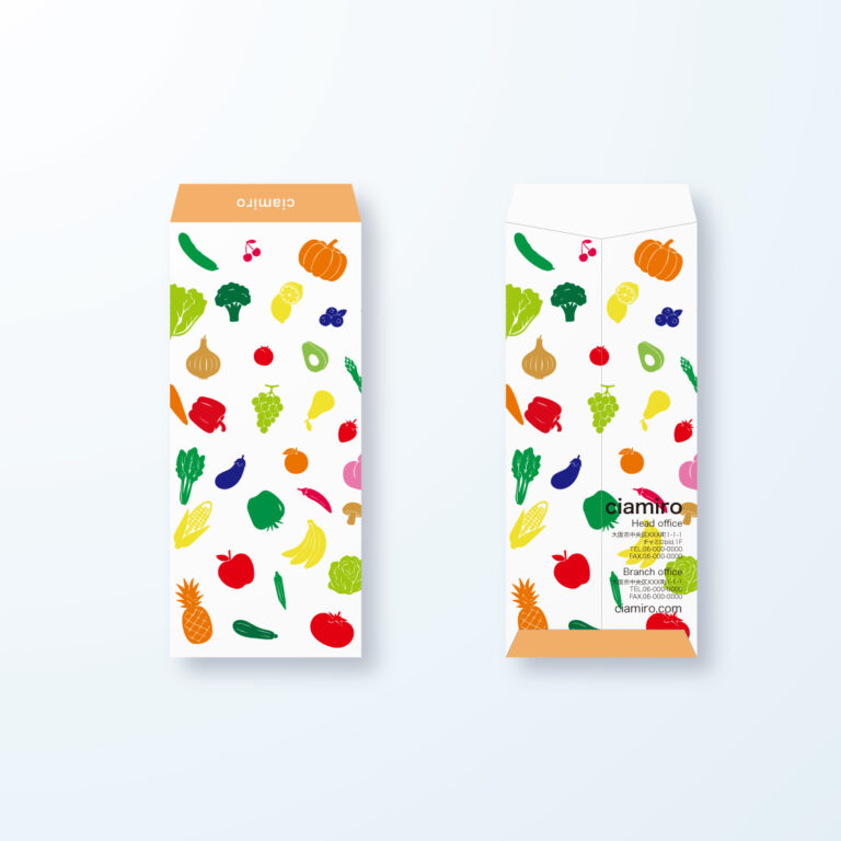 【洋長3封筒】カラフルなフルーツ&ベジタブルのポップロゴ